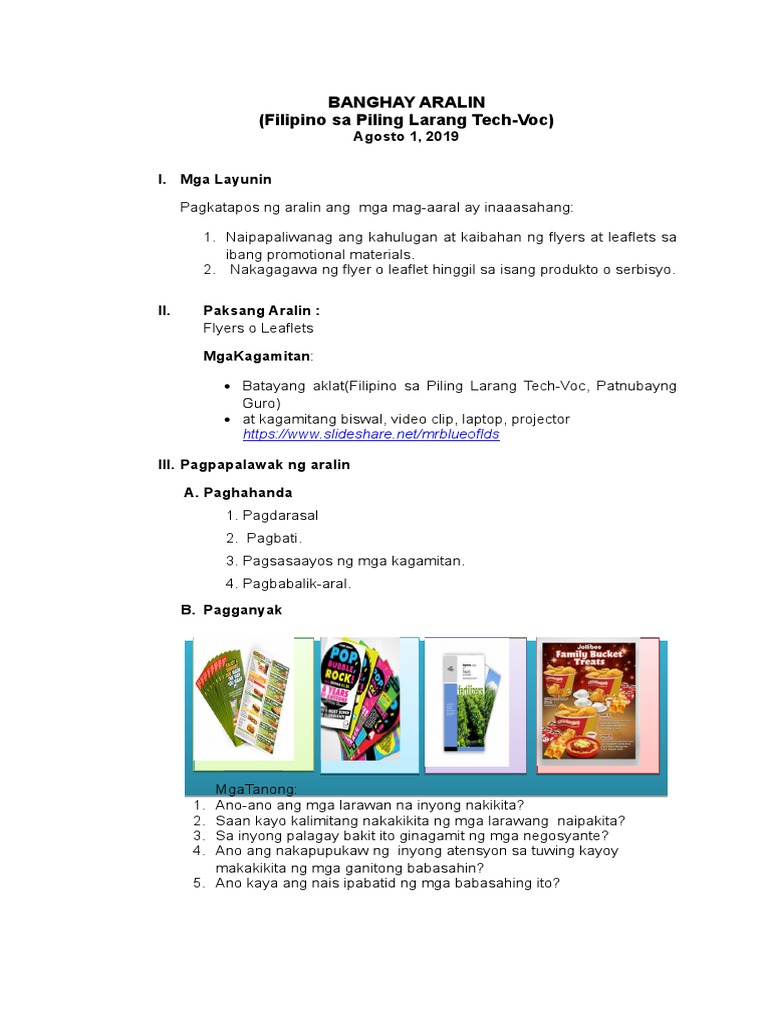 Ginagamit ang mga ito bilang handout Ginagamit din ito bilang pabatid sa mga okasyon o bilang talaan ng mga. Sa katapusan ng aralin 100 ng mga mag-aaral ang inaasahang makatatamo ng 75 ng kasanayan na. Ang mga flyers at leaflets ay maaaring iabot isa-isa sa mga taong nakikita o nakakasalubong sa lansangan.